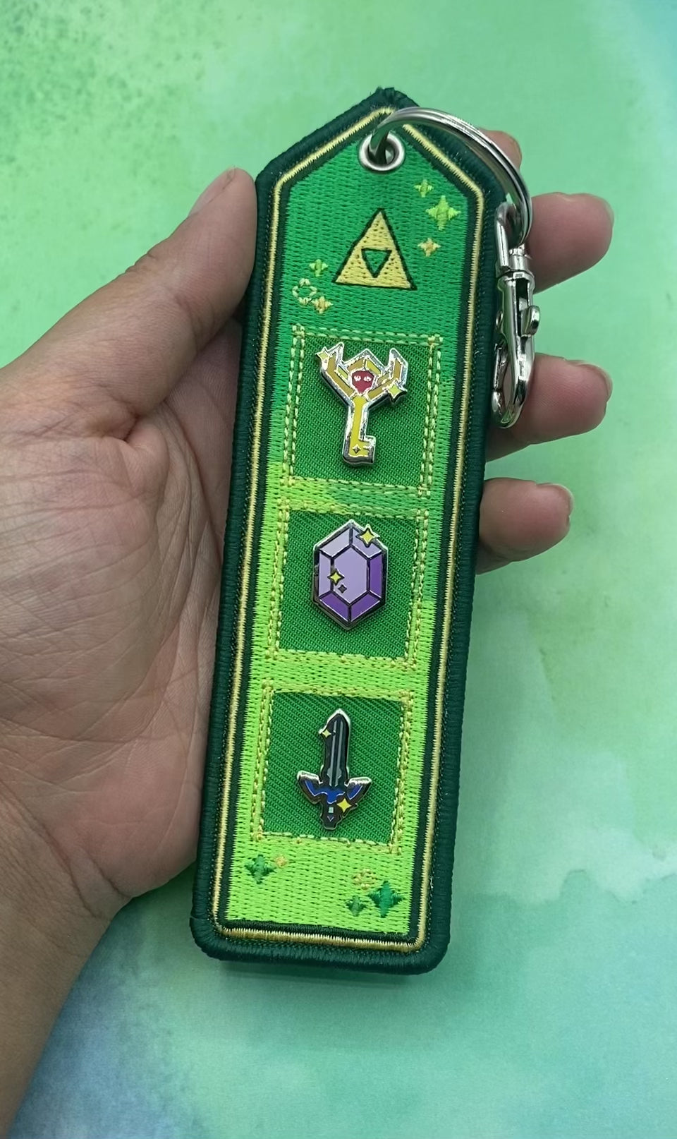 Introducing our LOZ inspired inventory Keychain with Mini pin items!